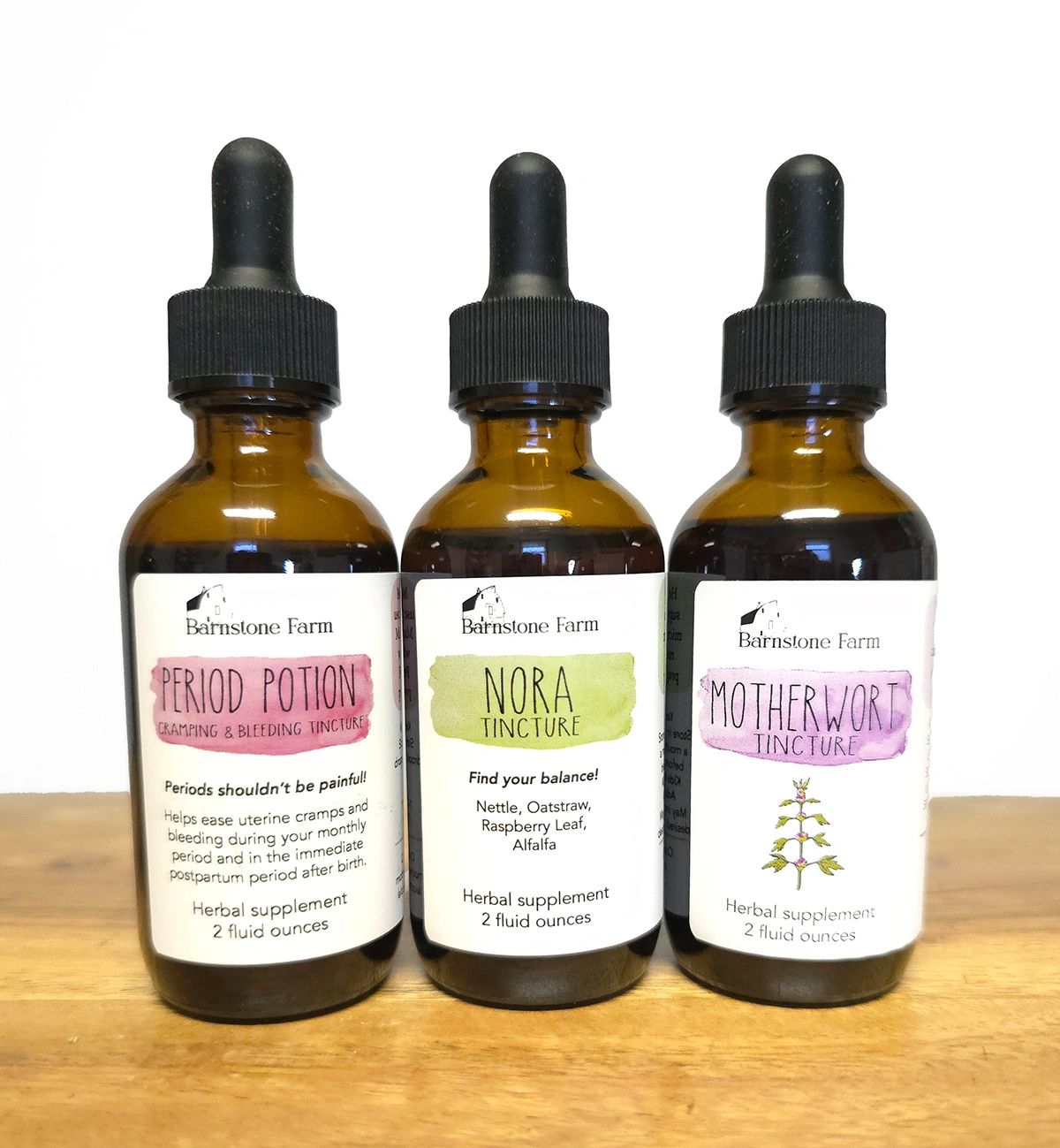 This is our favorite combination for painful periods! Daily NORA use will help balance your hormones, daily Motherwort use will help calm inflammation in your body, and Period Potion is here to save the day when cramps hit and you need relief fast!